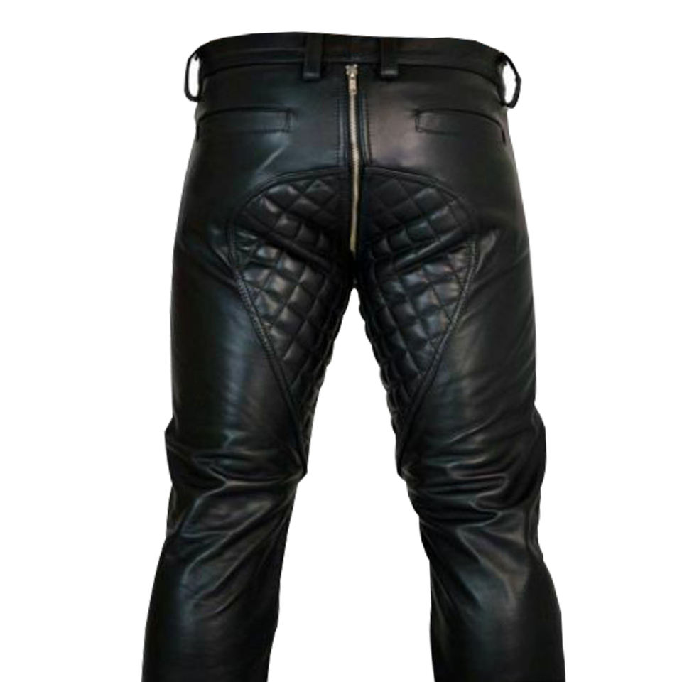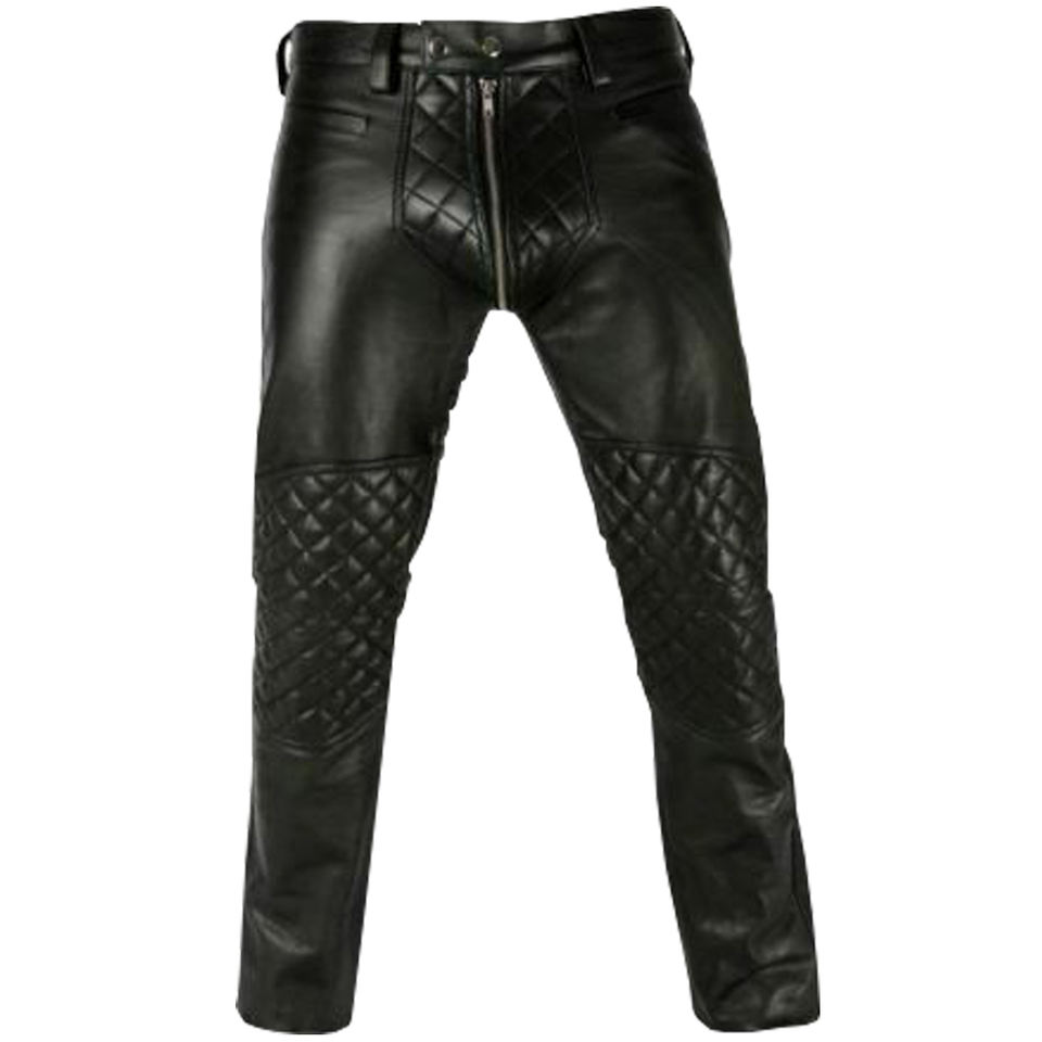 High Quality Leather Quilted Casual Biker Pants Men Plus Size Quick Dry Lightweight Button Fly Embroidered Mid Waist OEM Service