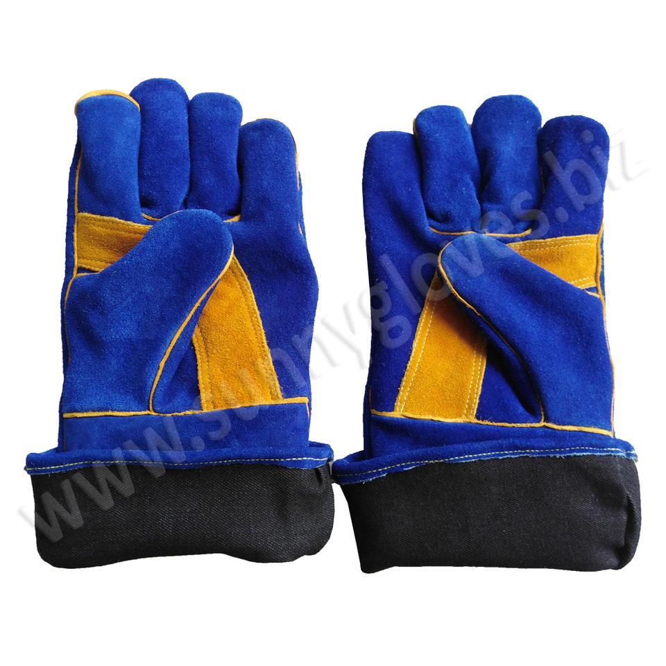 ถุงมืองานเชื่อมหนังอุตสาหกรรมถุงมือนิรภัยทนความร้อนสำหรับงานเชื่อมโลหะ