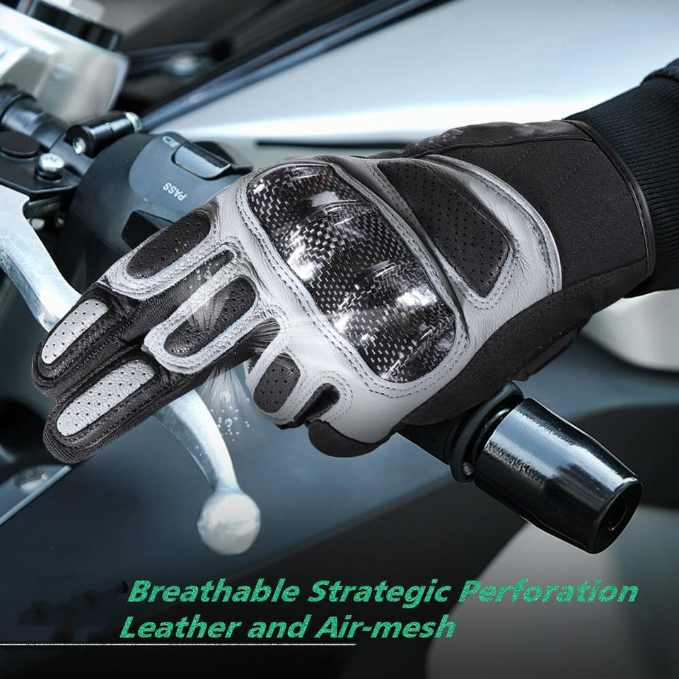 ถุงมือมอเตอร์ไซค์หนังคุณภาพสูง ป้องกันนิ้วเต็มรูปแบบ สำหรับผู้ชายและผู้หญิง ระบายอากาศได้ดี สวมใส่สบาย ใช้งานง่าย