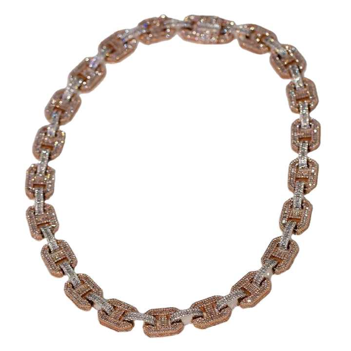 สร้อยคิวบันขนาด 18 มม. คุณภาพสูง ประดับเพชรทรงบริลเลียนต์แบบสองสี ผลิตด้วยเทคนิค Lab Grown สำหรับทั้งชายและหญิง วัสดุทอง 14K ชุบทอง