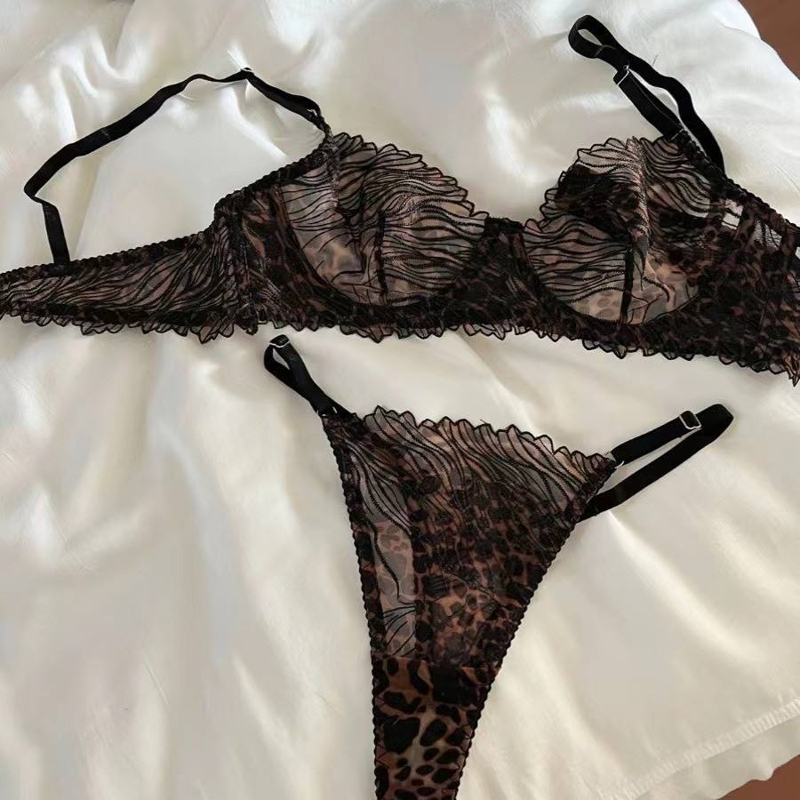 ชุดบราดันทรงสายคล้องไหล่ชุดชั้นในสตรีพิมพ์ลายเสือดาว