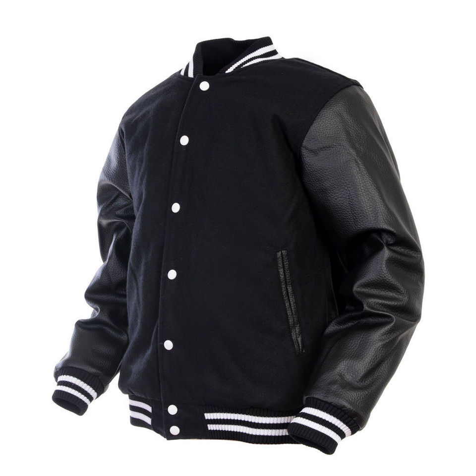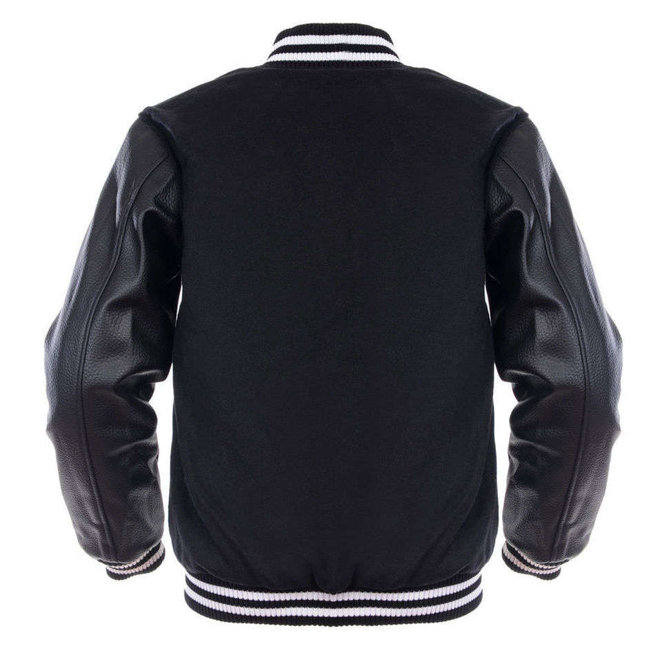 เสื้อแจ็คเก็ตวูลผู้ชายสไตล์ Varsity แขนหนัง