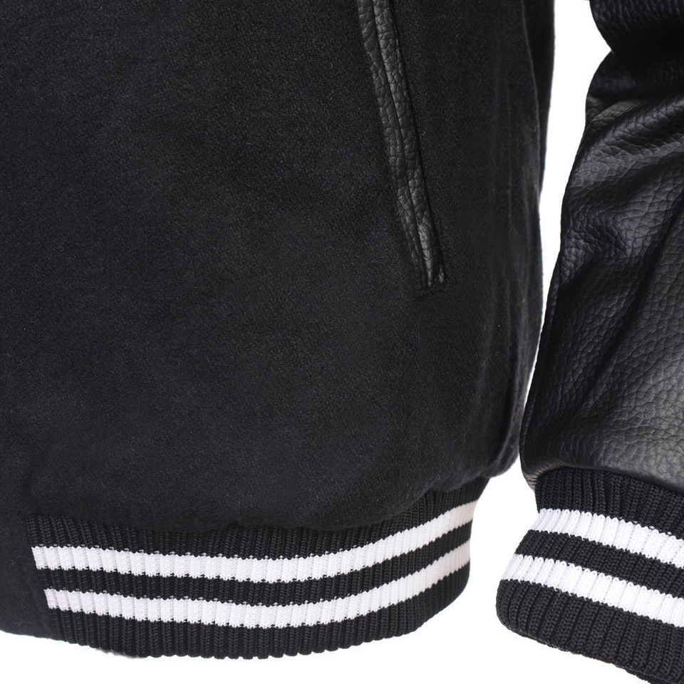 ชื่อสินค้า:เสื้อแจ็คเก็ตวูลผู้ชายสไตล์ Varsity แขนหนัง
