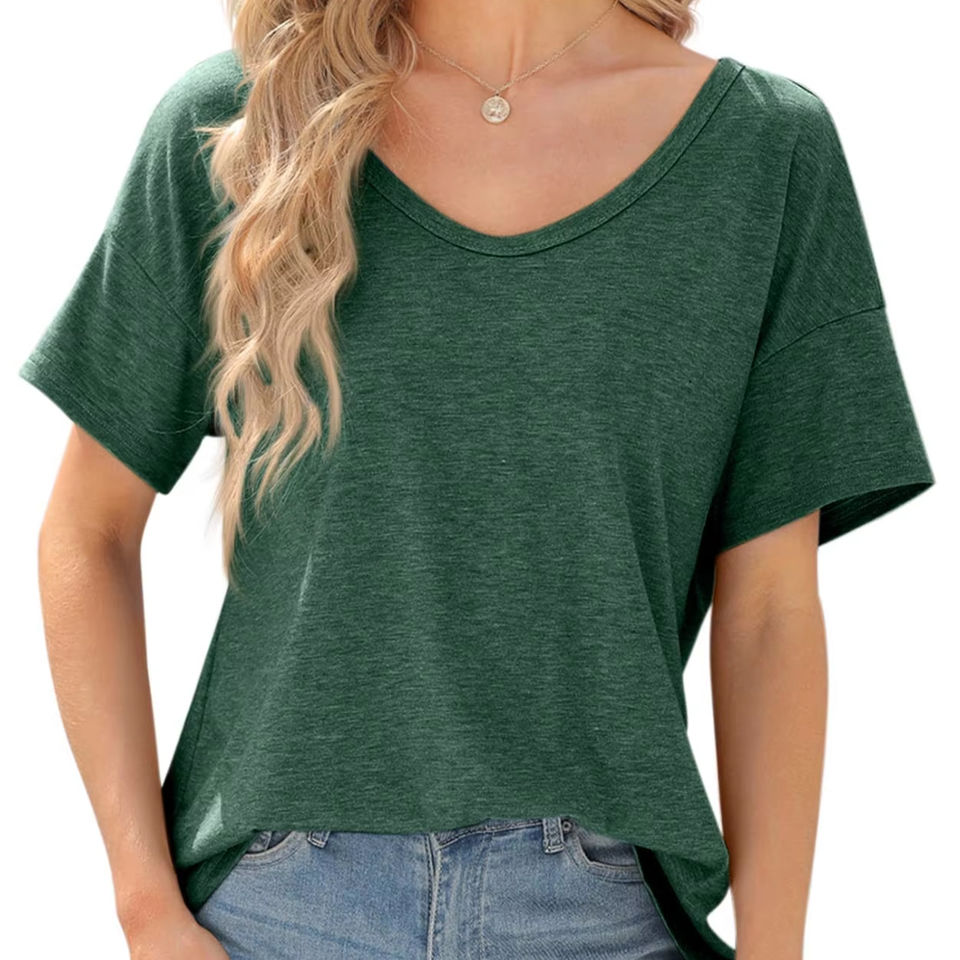 เสื้อยืดผ้าแคนวาสสีเขียวอ่อนคุณภาพสูงสำหรับผู้หญิงไซส์ใหญ่ ลายเรียบ ระบายอากาศได้ดี ไม่เป็นขุย แห้งเร็ว รับผลิตแบรนด์ตามสั่ง