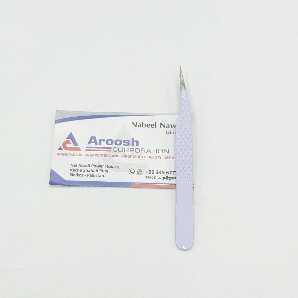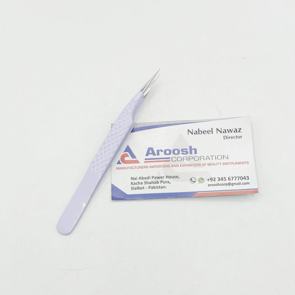ตัวหนีบแบบตรงสำหรับต่อขนตาจับเพชรสีม่วงอ่อนทนทานทำจากสเตนเลสปลายแหลม