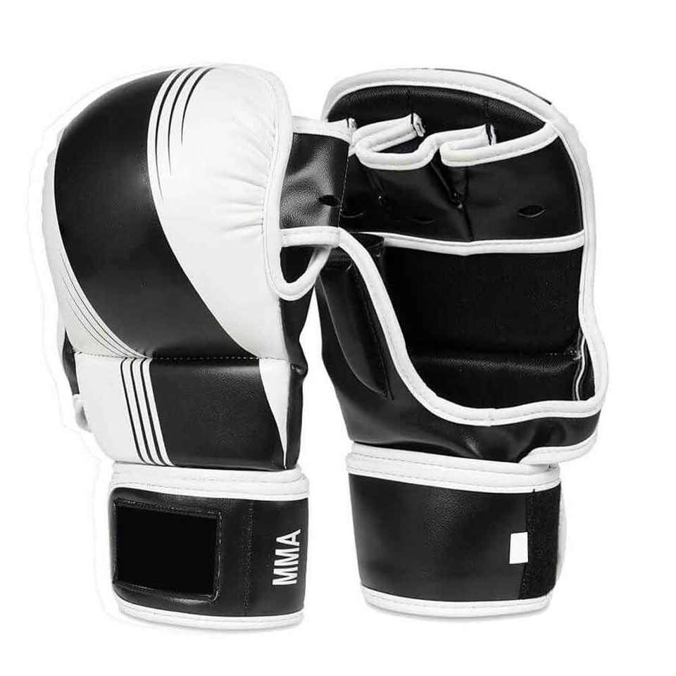 ถุงมือ MMA หนัง PU คุณภาพสูง น้ำหนักเบา ระบายอากาศได้ดี พร้อมตัวล็อคแบบปรับได้ สีและโลโก้สั่งทำได้ สำหรับศิลปะการต่อสู้และมวย