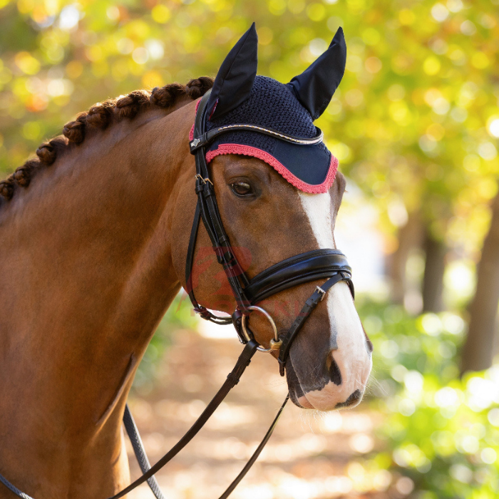 ผ้าคลุมหัวม้าถักโครเชต์ระบายอากาศได้ผ้าคลุมบินสำหรับนักขี่ม้าสไตล์หรูหรา