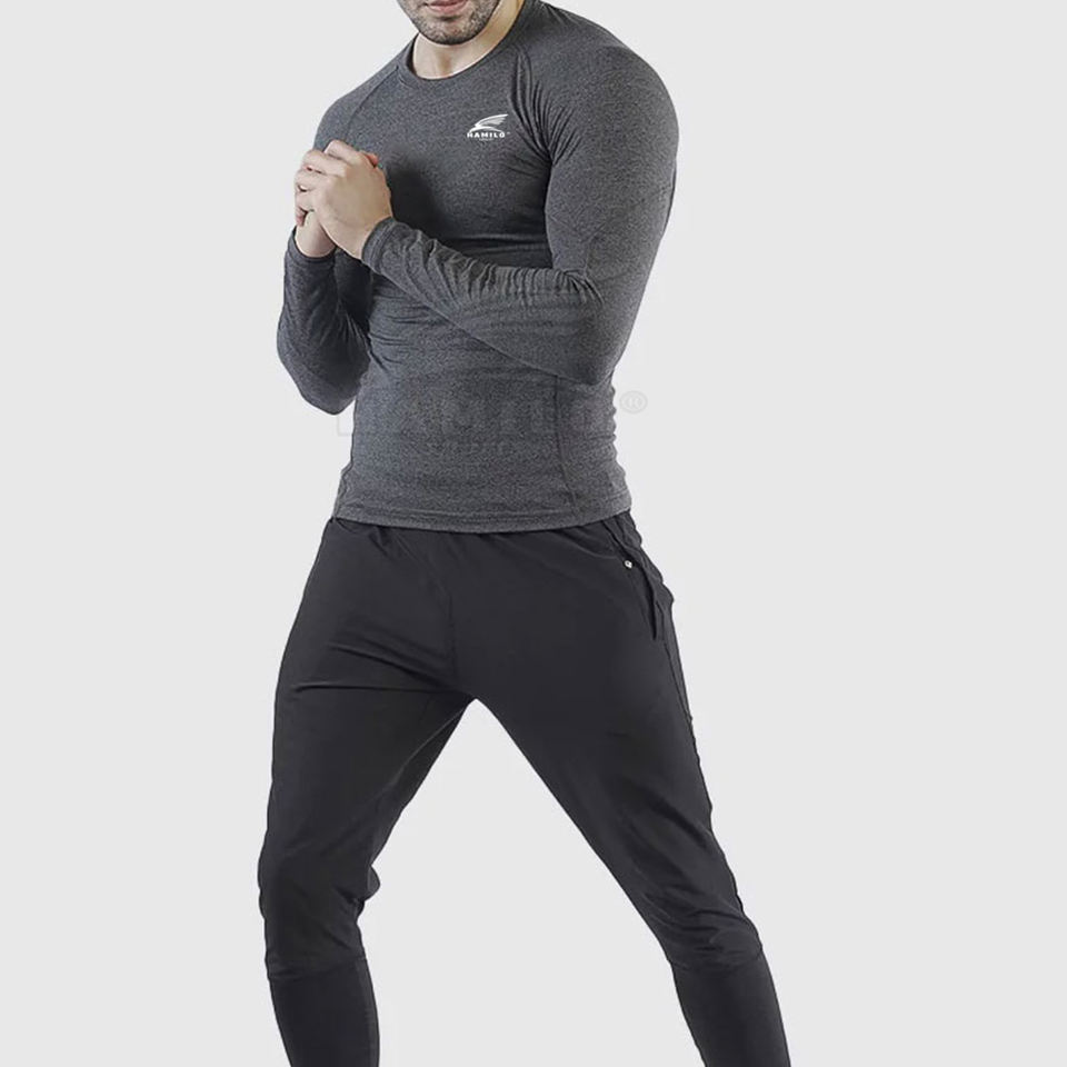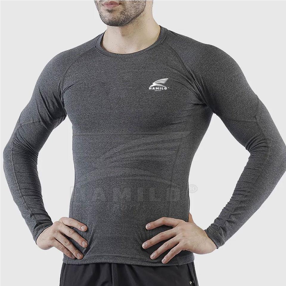 เสื้อรัดกล้ามเนื้อแขนยาวของผู้ชายผ้าถักแบบแห้งเร็วดีไซน์เรียบง่ายและพิมพ์ลาย