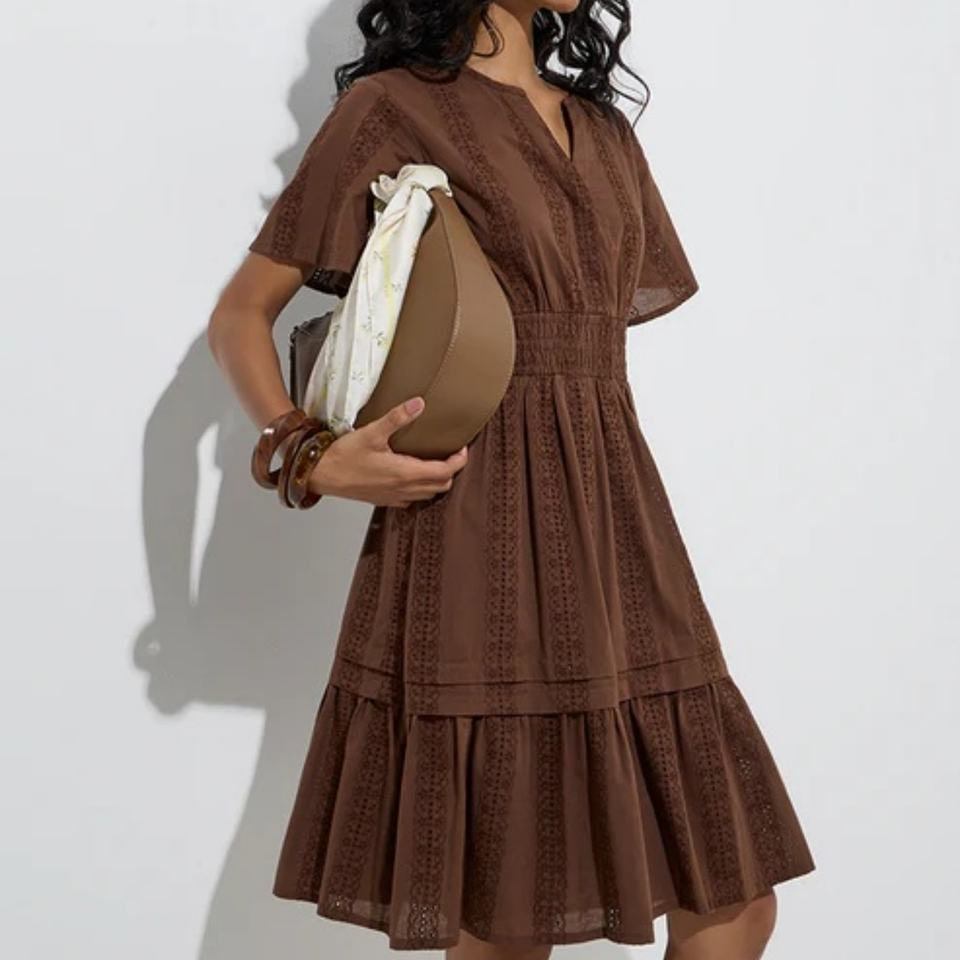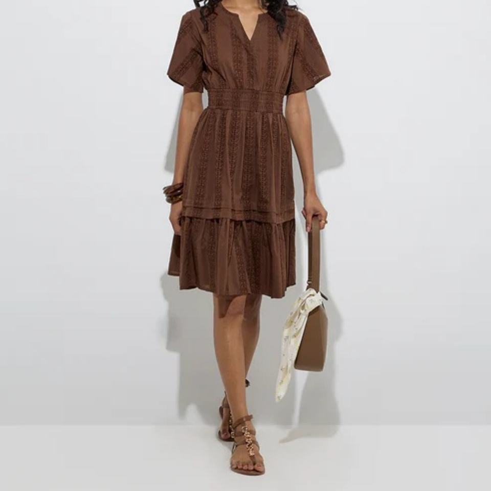 เดรสยาวผ้าลินินคุณภาพสูงสำหรับผู้หญิง ดีไซน์ระบายทรงเอไลน์ สไตล์โบฮีเมียนลำลอง สวยสง่า