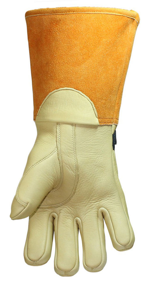 ถุงมือไฟฟ้าหนังแพะข้อมือยาวป้องกันรอยโค้งตัดหนังหลักสินค้าใหม่