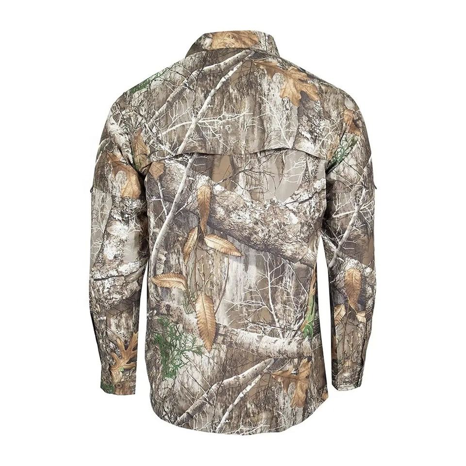 เสื้อยืดวินเทจแขนยาวคุณภาพสูงแบบกําหนดเอง ชุดตกปลาบุรุษ เสื้อเชิ้ตลายพราง Realtree ปุ่มขึ้นปก