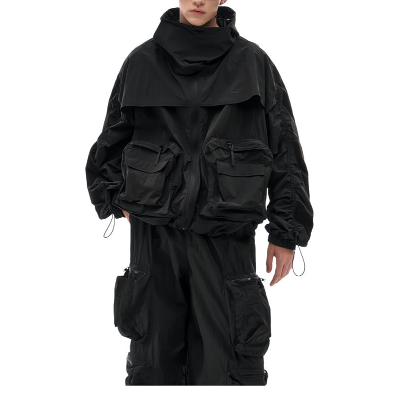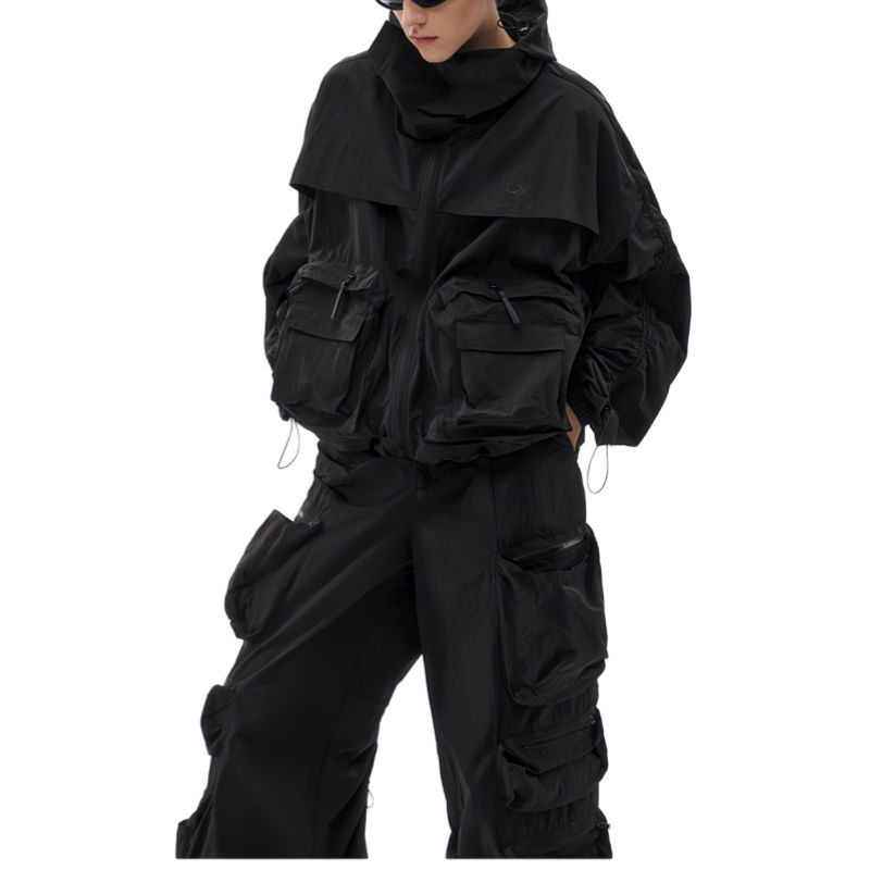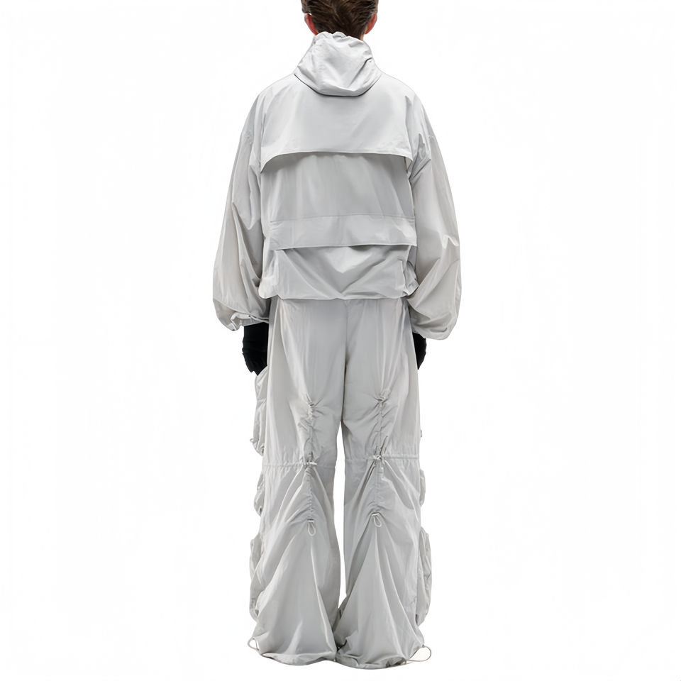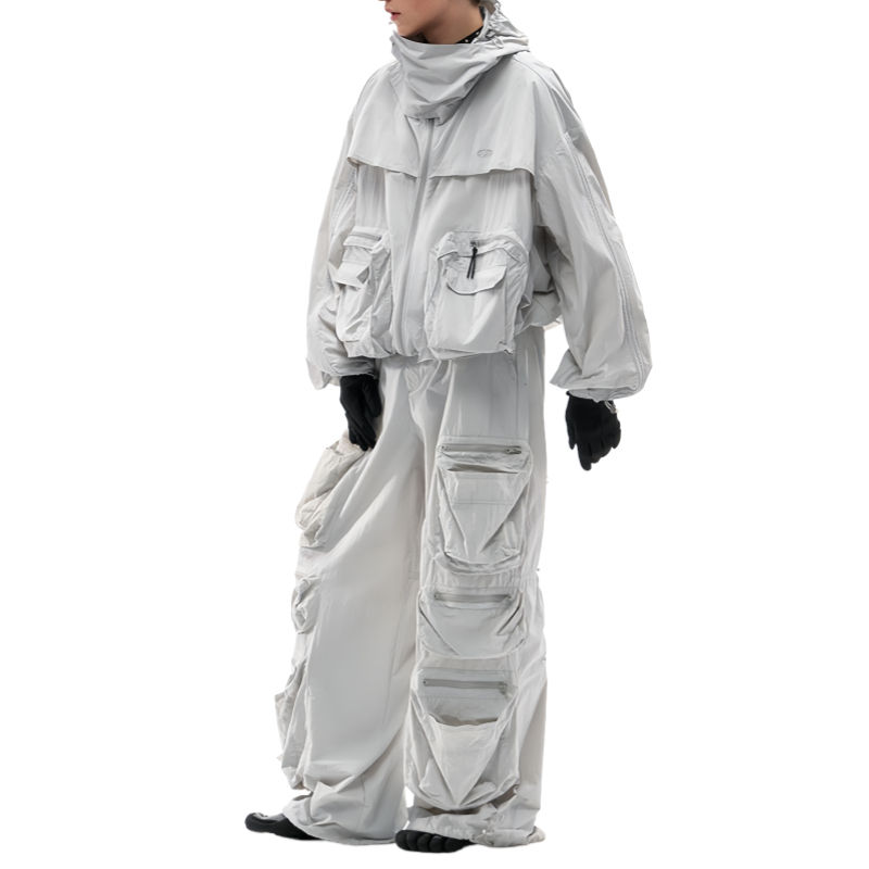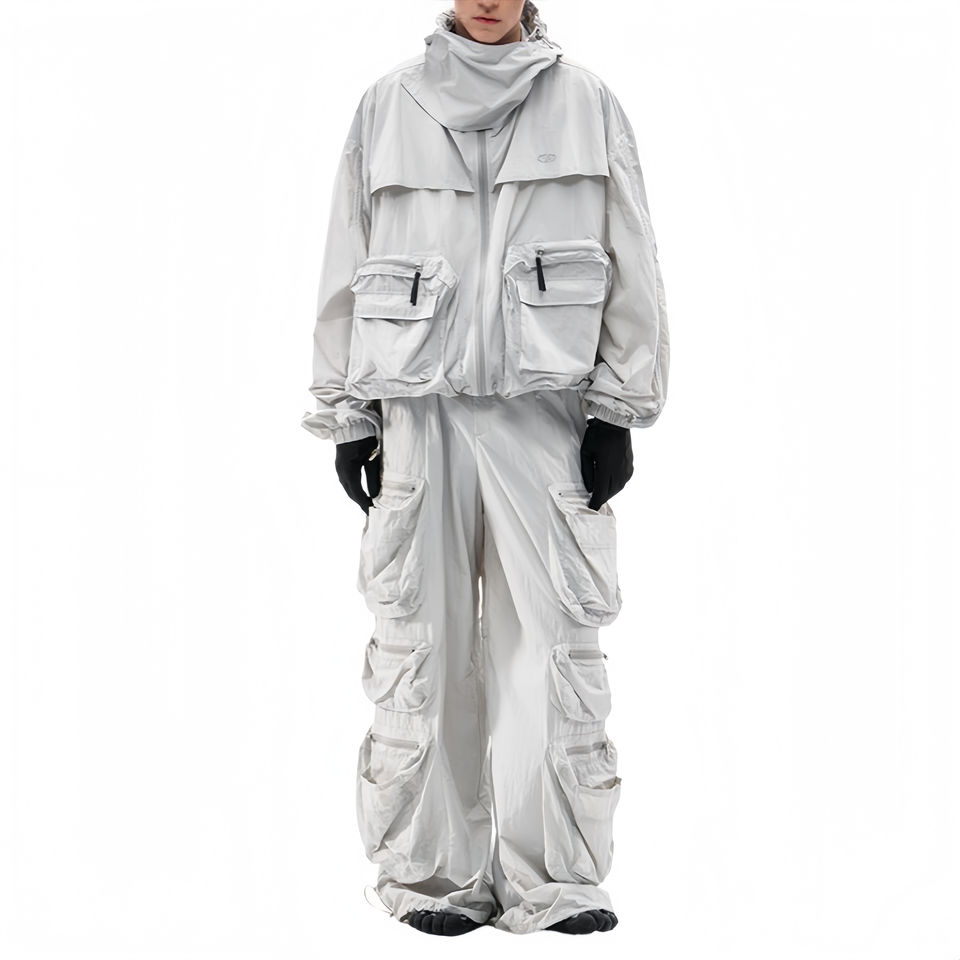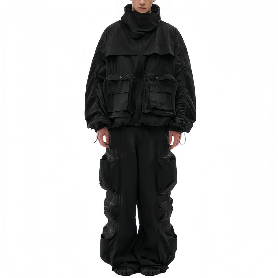ชุดแทรคสูทผู้ชายผ้าเฟรนช์เทอร์รี่ แขนยาว มีฮู้ดแบบมีเชือกผูก กระเป๋าคาร์โก้ ทรงปกติ กางเกงจ็อกเกอร์ผ้าทวิลล์ คุณภาพสูง