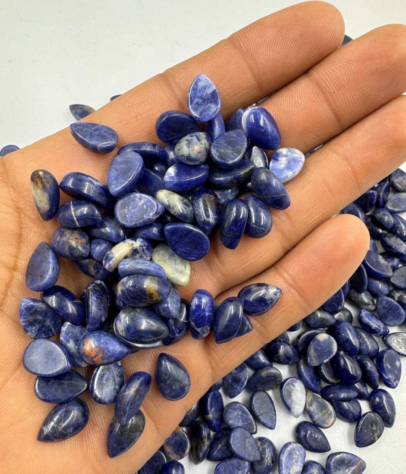 พลอยโซดาไลต์ธรรมชาติ8x10มม. ทรงลูกแพร์เรียบอัญมณีสำหรับทำเครื่องประดับสีน้ำเงินขายส่ง