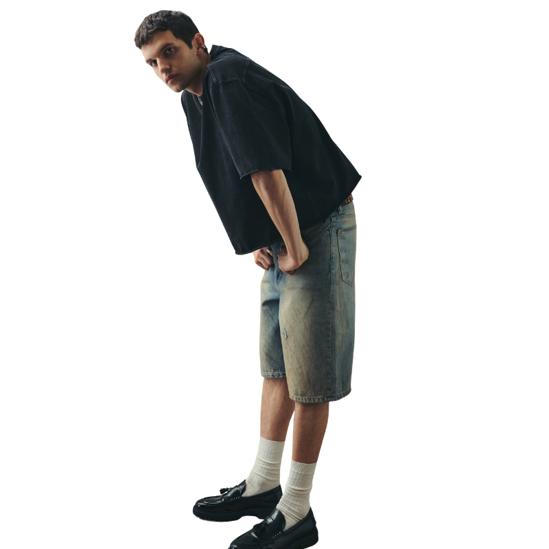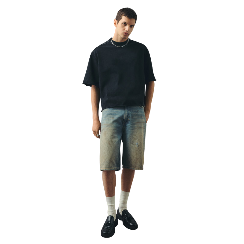 เสื้อยืดครอปทรงหลวมคุณภาพสูง ผ้าฝ้าย 100% สไตล์วินเทจฟอกสี เสื้อยืดผู้ชายขายส่ง