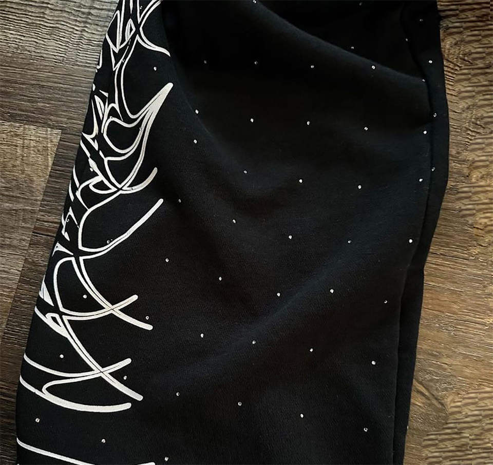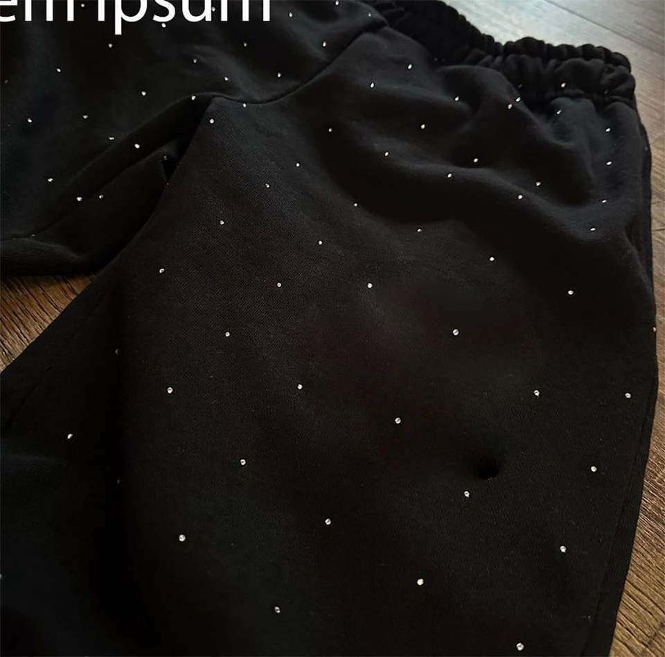 กางเกงสเวตเตอร์สำหรับผู้ชายทรงหลวมโอเวอร์ไซส์พิมพ์ลายสกรีนลายสำหรับใส่วิ่งประดับพลอยเทียมธรรมดา