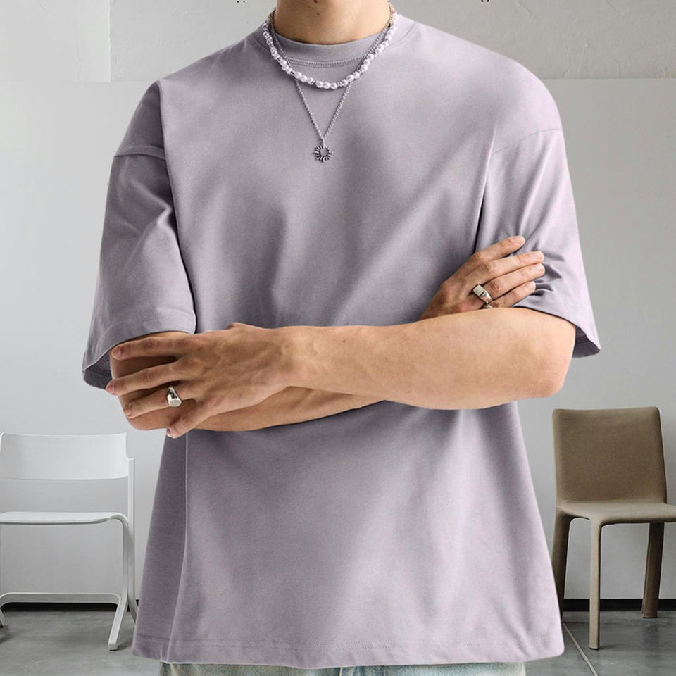 เสื้อยืดคอกลมทรงหลวมสำหรับผู้ชายเสื้อยืดทรงโอเวอร์ไซส์ทรงหลวมสำหรับฤดูร้อนโลโก้ออกแบบได้ตามต้องการ