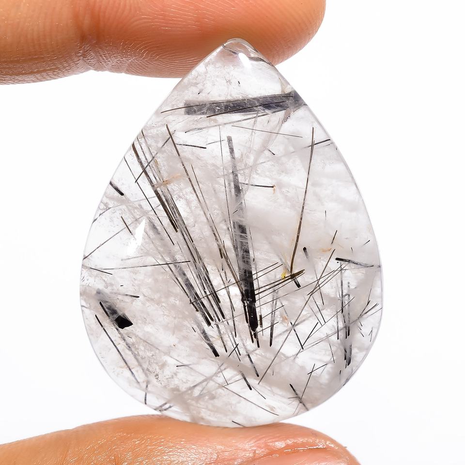 พลอยควอตซ์อัญมณีทรงหลังเบี้ยสีดำธรรมชาติทรงรีเรียบสำหรับทำเครื่องประดับ