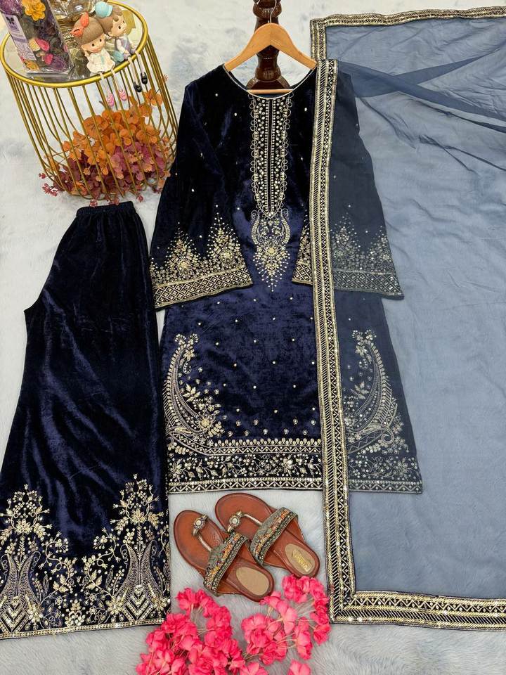 ผ้ากำมะหยี่วิสโคสเนื้อหนาคุณภาพสูงราคาประหยัด งานปักเลื่อมขนาด 5 มม. ดีไซน์เนอร์ ซัลวาร์ คามีซ สำหรับเดือนรอมฎอน