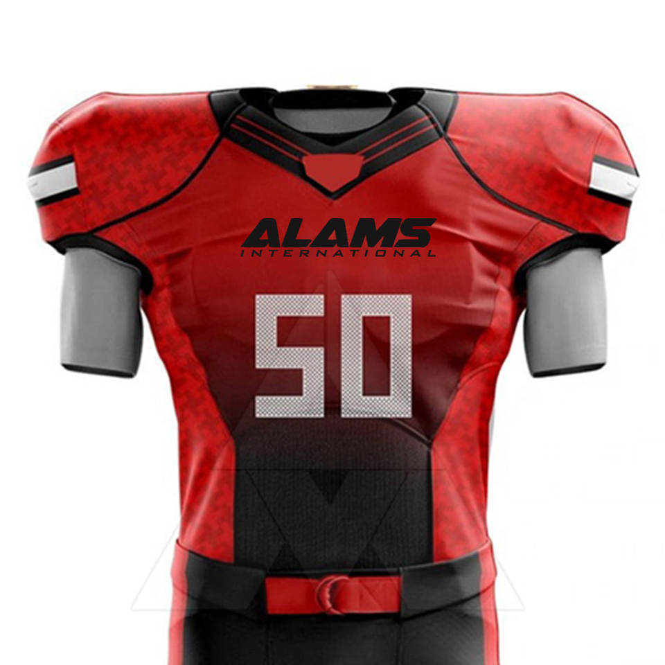 ชุดอเมริกันฟุตบอลคุณภาพสูง ผลิตจากโพลีเอสเตอร์ 100% ราคาประหยัด สีและโลโก้ปรับแต่งได้ทุกขนาด ใช้ได้ทุกฤดู บริการ OEM