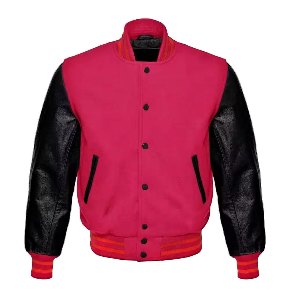 แจ็คเก็ตเบสบอลผู้ชายคุณภาพสูงราคาประหยัดสวมใส่สบาย แขนหนัง แจ็คเก็ตเลตเตอร์แมนสำหรับผู้ชาย
