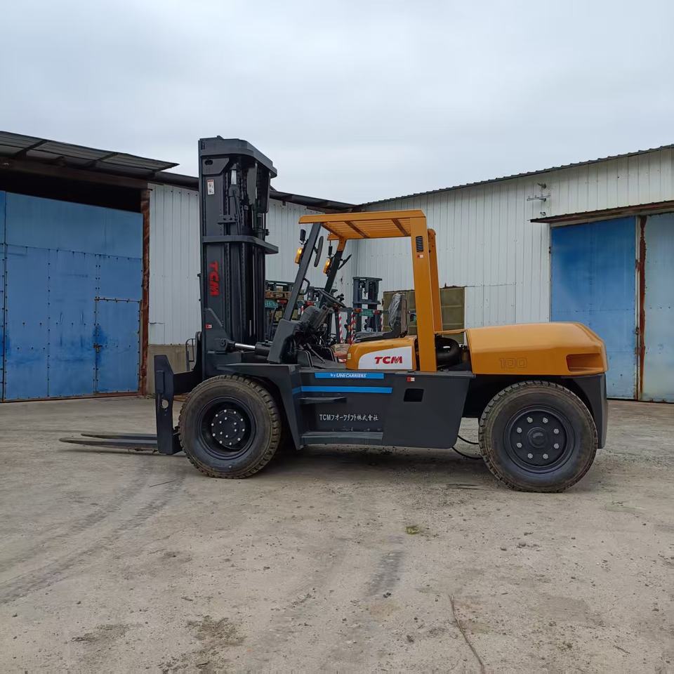 รถยกดีเซล TCM FD100 มือสอง คุณภาพสูง ราคาประหยัด ขนาด 10 ตัน ยางตัน เสากระโดงสองท่อน ผลิตในญี่ปุ่น รับน้ำหนัก 3-15 ตัน จากเซี่ยงไฮ้