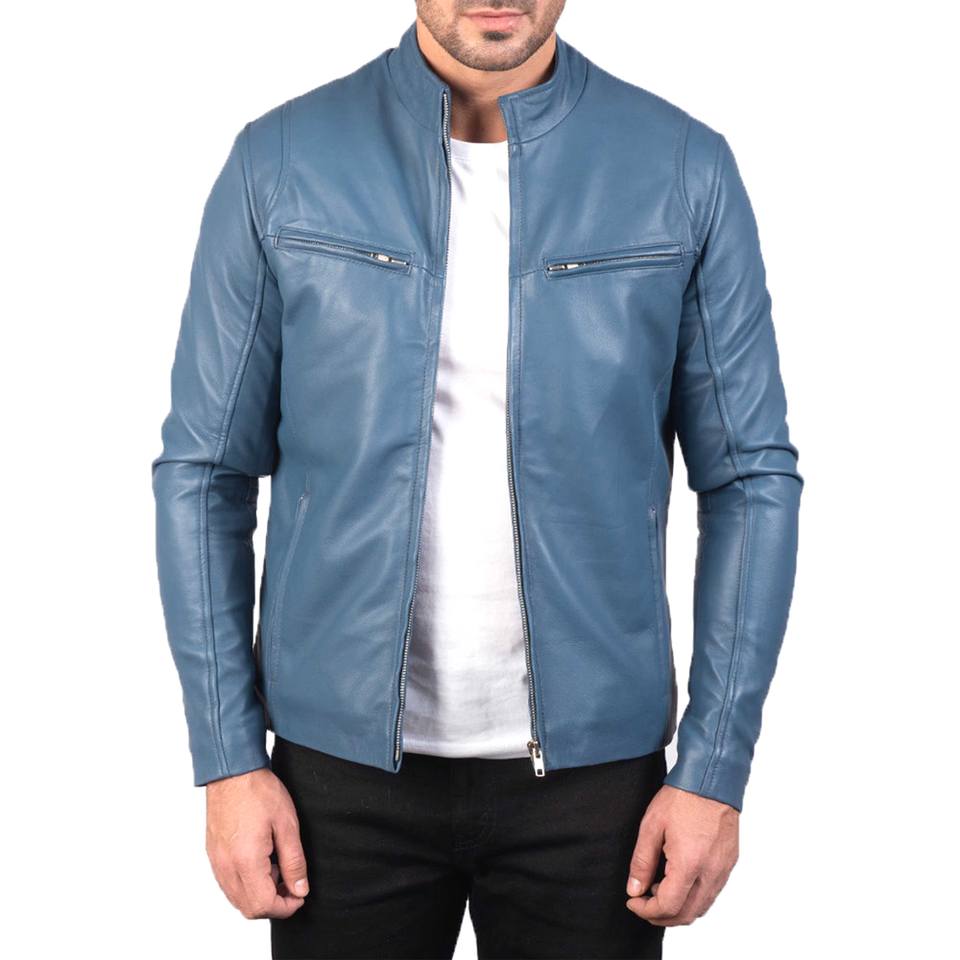 แจ็กเก็ตหนังสำหรับผู้ชายเสื้อแจ็กเก็ตหนังสไตล์นักขี่จักรยานงานแฮนด์เมด