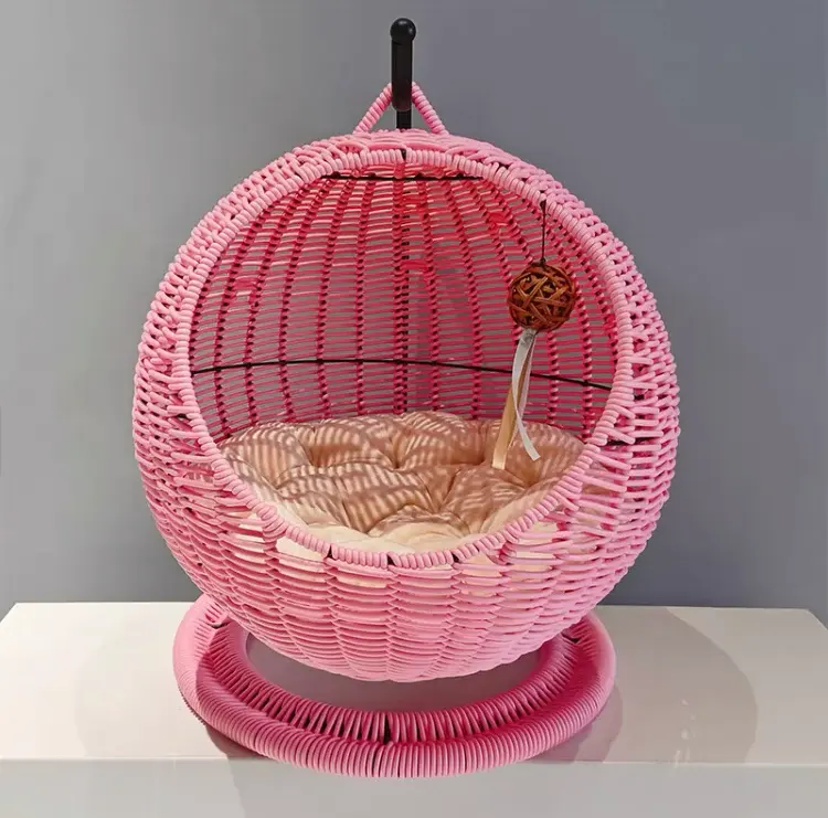 เตียงสัตว์เลี้ยงทำจากหวายระบายอากาศได้ดีสีฟ้าชมพูผ้าทอมือหรูหราและสะดวกสบายเตียงหวายสำหรับแมวจากเวียดนาม