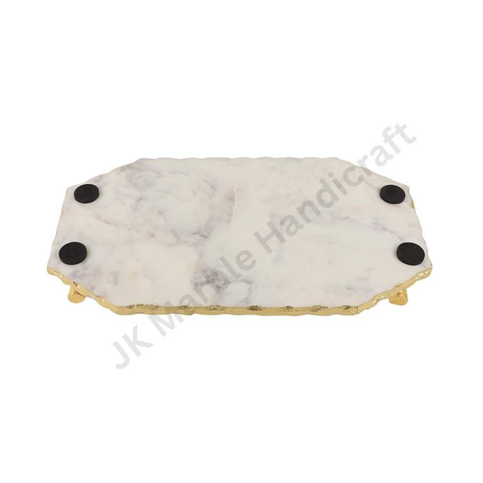 ถาดเสิร์ฟหินอ่อนและทองเหลืองสุดหรูสำหรับตกแต่งบ้านและให้ความบันเทิง