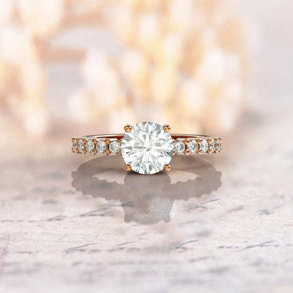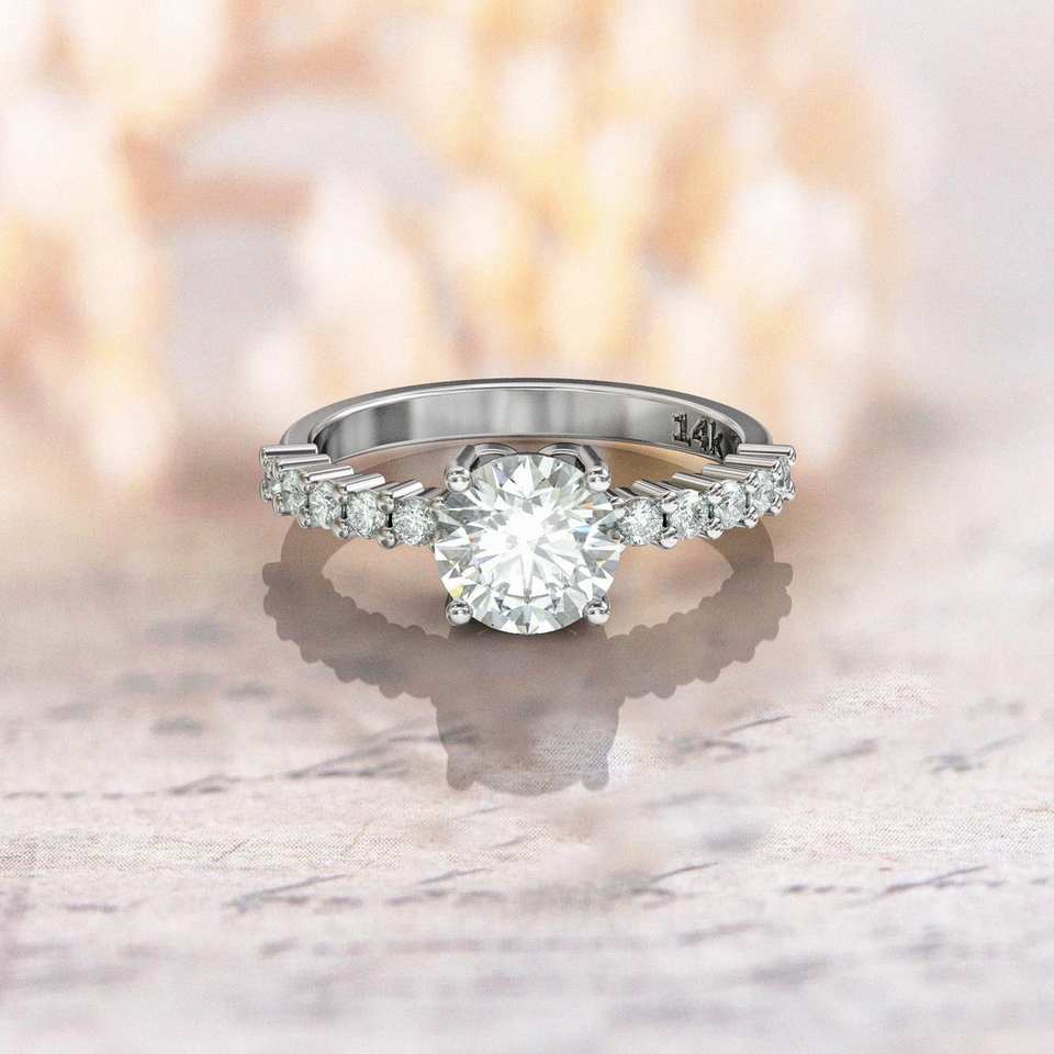แหวนหมั้นเพชรโมอิสซาไนต์คุณภาพสูง 1 กะรัต ทรงกลม ตัวเรือนทองคำขาว 10K สำหรับเจ้าสาว เครื่องประดับชั้นดี ผู้ส่งออก