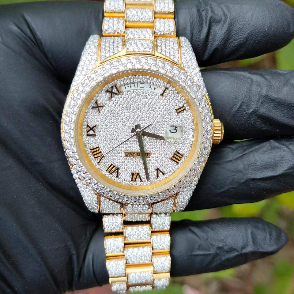 นาฬิกาเพชรโมอิสซาไนต์คุณภาพสูงหรูหรา ระบบอัตโนมัติ ทรงเหลี่ยมเจียระไนแบบบริลเลียนท์ สไตล์ฮิปฮอป สายสแตนเลสขนาด 20 มม.