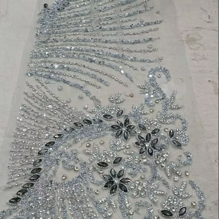ผ้าลูกปัดเพทายหรูหราทำด้วยมือโพลีเอสเตอร์100% ส่งออกจากผู้ผลิตเสื้อผ้าอินเดีย