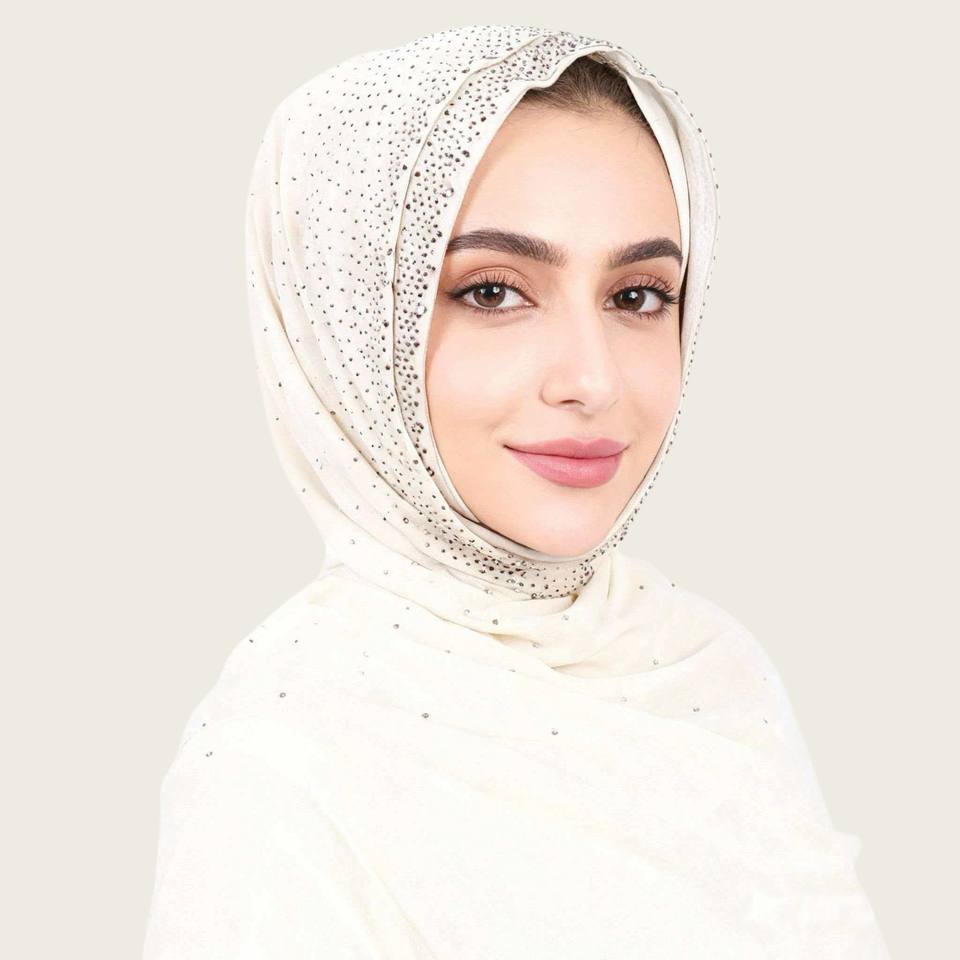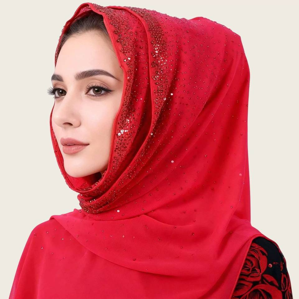 ผ้าคลุมศีรษะชีฟองคุณภาพสูงหรูหรา ประดับมุกและคริสตัล ผ้าพันคอยาวสไตล์ชาติพันธุ์ สีพื้น ขนาดใหญ่