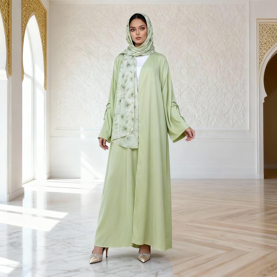 ชุดอาบายะผ้าโพลีเอสเตอร์พิมพ์ลายสั่งทำพิเศษ คุณภาพสูง หรูหรา พร้อมดีไซน์เปิดด้านหน้าและฮิญาบ สำหรับสตรีชาวมุสลิม