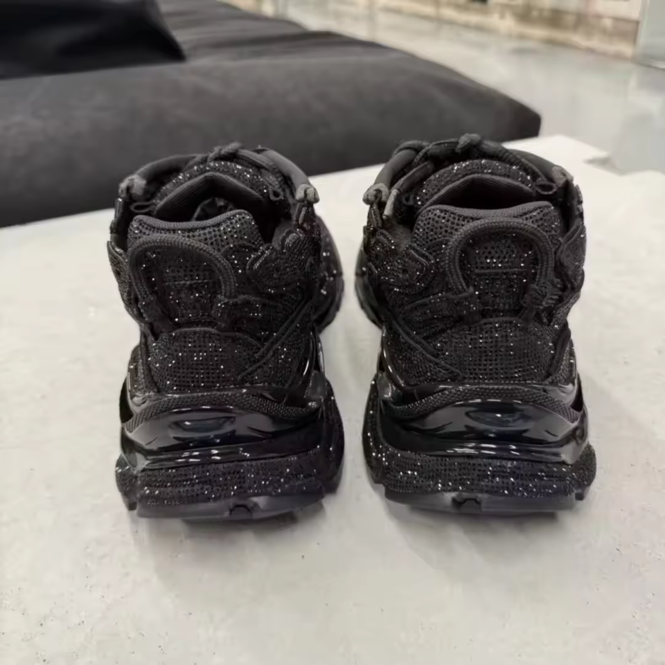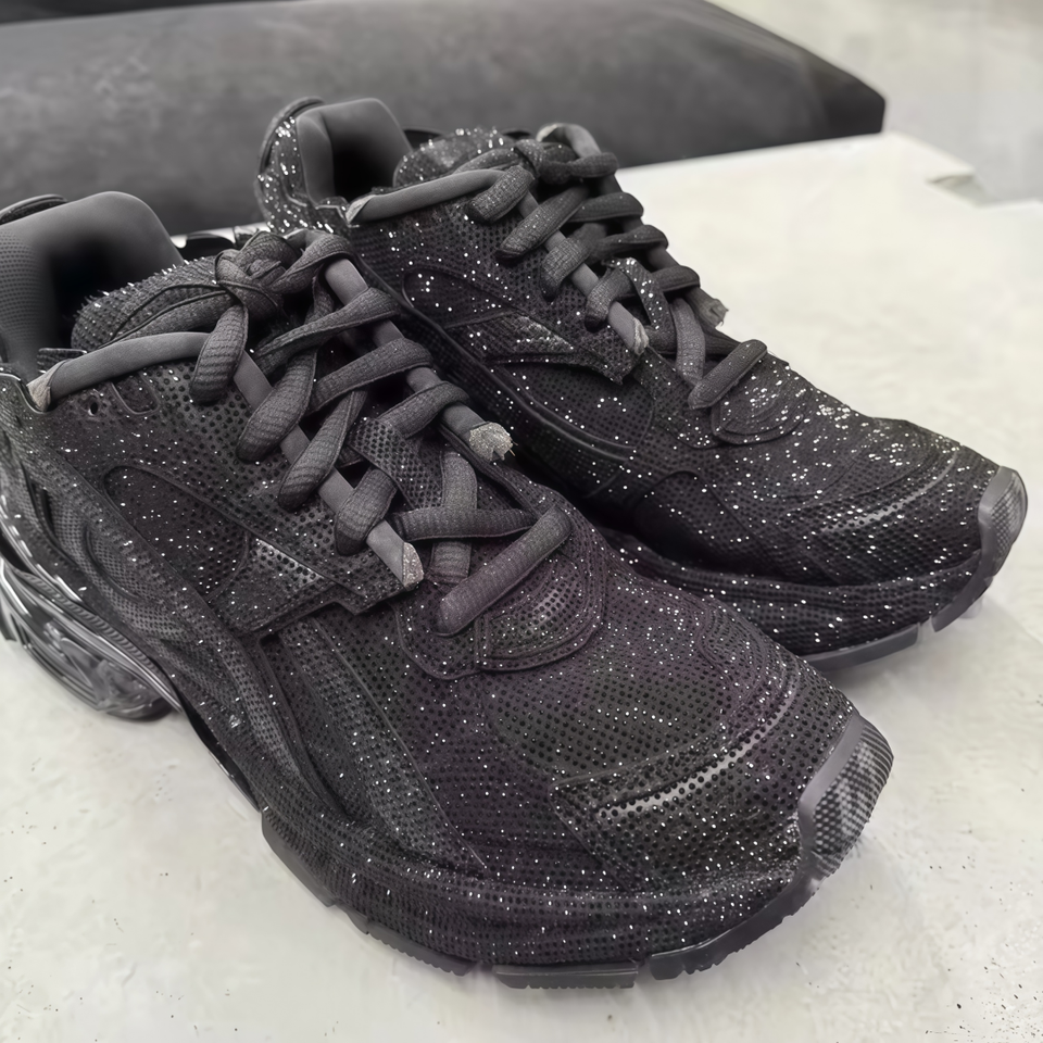 รองเท้าวิ่งดีไซน์หรูคุณภาพสูงประดับเพชร สำหรับผู้ชายและผู้หญิง แบบผูกเชือก แฟชั่นสไตล์เรโทร เดินสบาย รองเท้าลำลอง