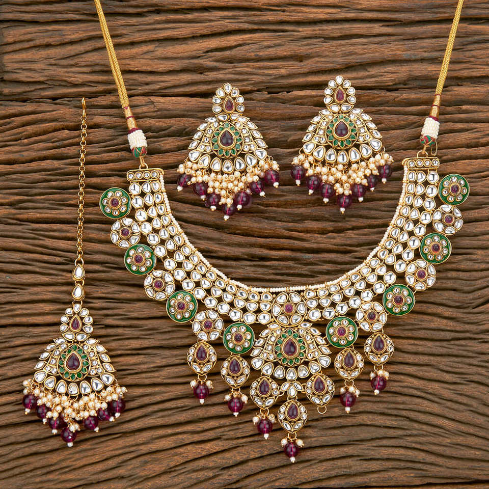 คุณภาพสูงออกแบบหรูหรา Indo Western บอลลีวูดสไตล์ Meenakari ชุดสร้อยคอชุบทอง