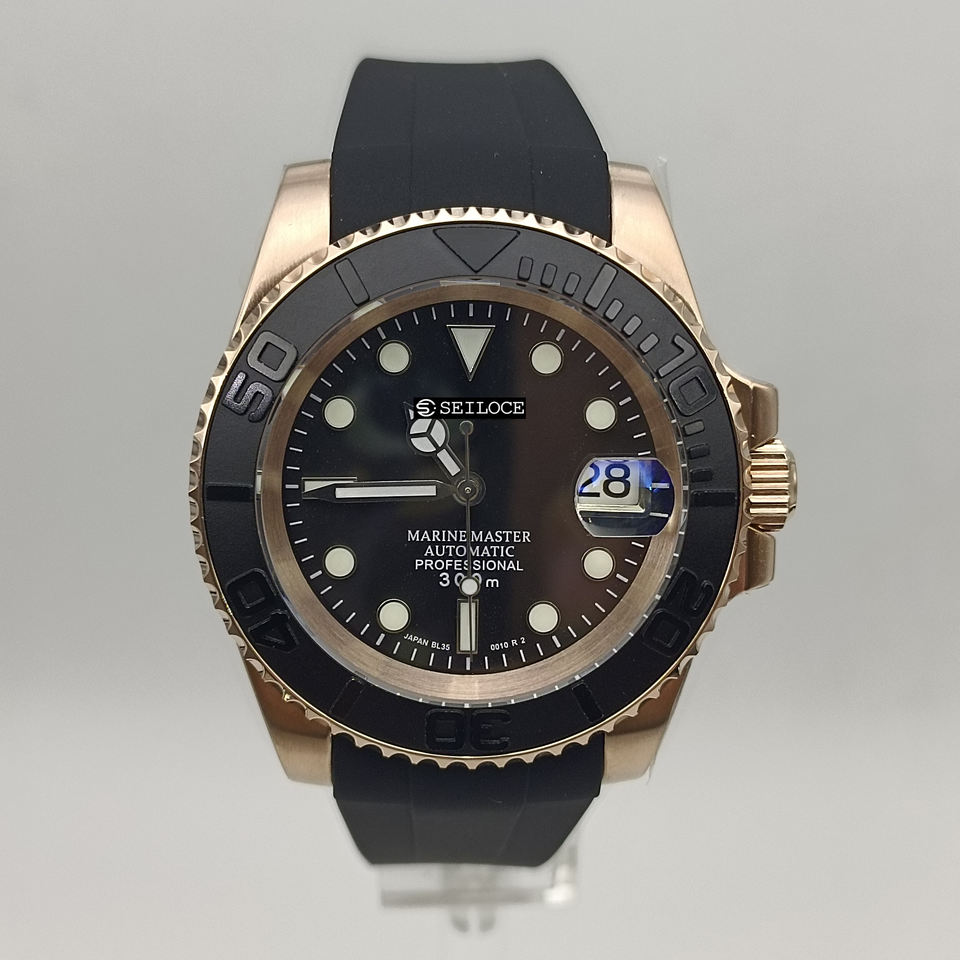 คุณภาพสูง นาฬิกาดีไซน์หรูสำหรับผู้ชาย ระบบอัตโนมัติ NH35 ตัวเรือนสแตนเลส กระจกแซฟไฟร์ นาฬิกาดำน้ำสุดหรูสำหรับผู้ชาย