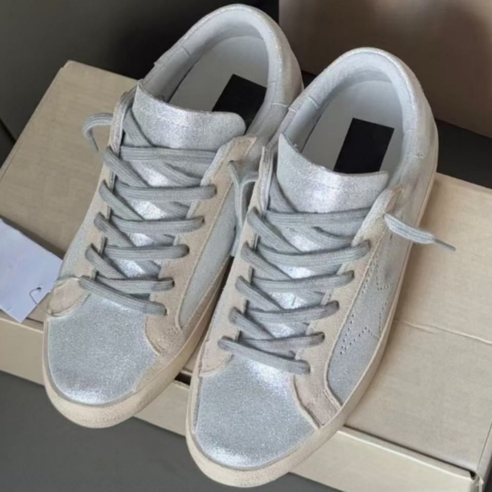 รองเท้าผ้าใบดีไซน์หรูคุณภาพสูง สีเงิน รุ่น Goose ระบายอากาศได้ดี แบบผูกเชือก กันลื่น สวมใส่สบาย สไตล์วินเทจสีทอง