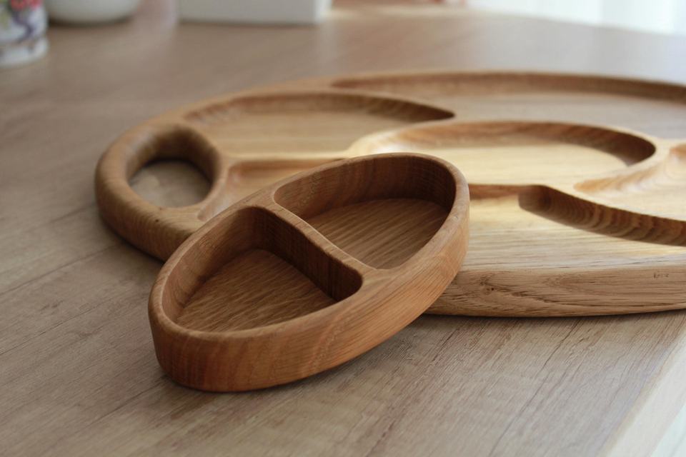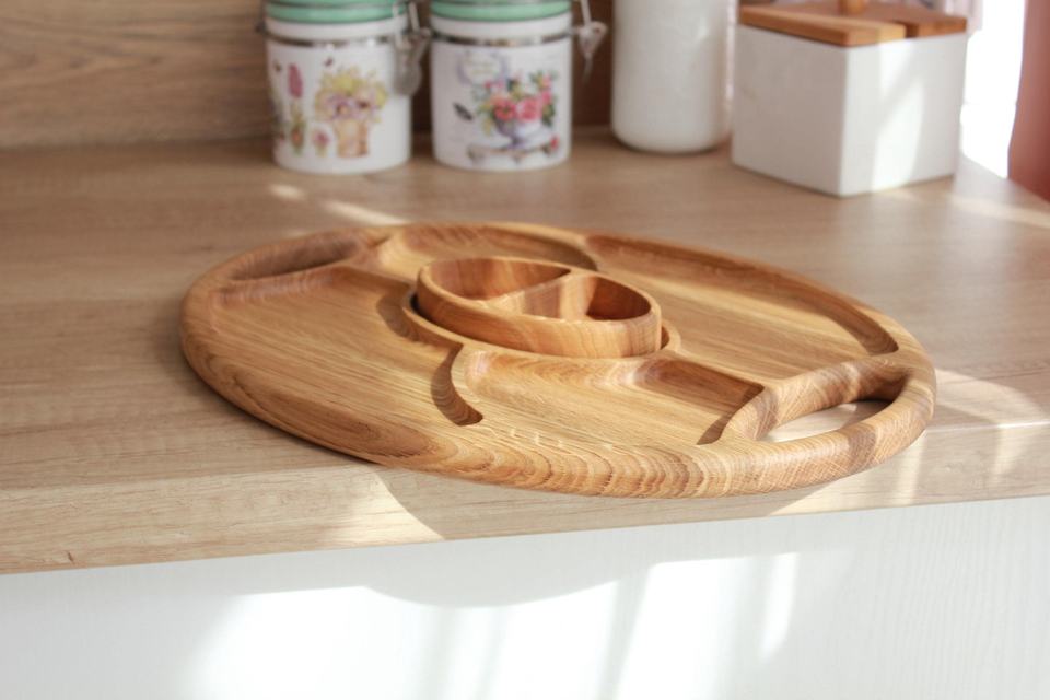 ถาดไม้กลมสลักลายคุณภาพสูง ดีไซน์คลาสสิก เป็นมิตรกับสิ่งแวดล้อม เหมาะสำหรับเสิร์ฟผลไม้อบแห้งในงานปาร์ตี้