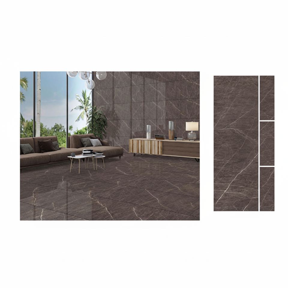 กระเบื้องพอร์ซเลนมันวาวคุณภาพสูงหรูหราขนาด600*1200มม. สำหรับผนังและพื้นห้องนั่งเล่นสไตล์การออกแบบที่ทันสมัยสำหรับผนังภายนอก
