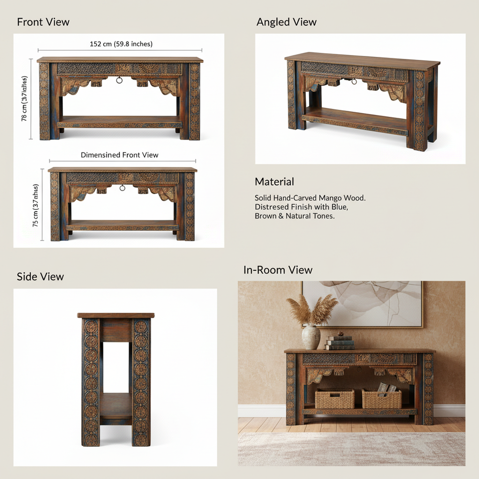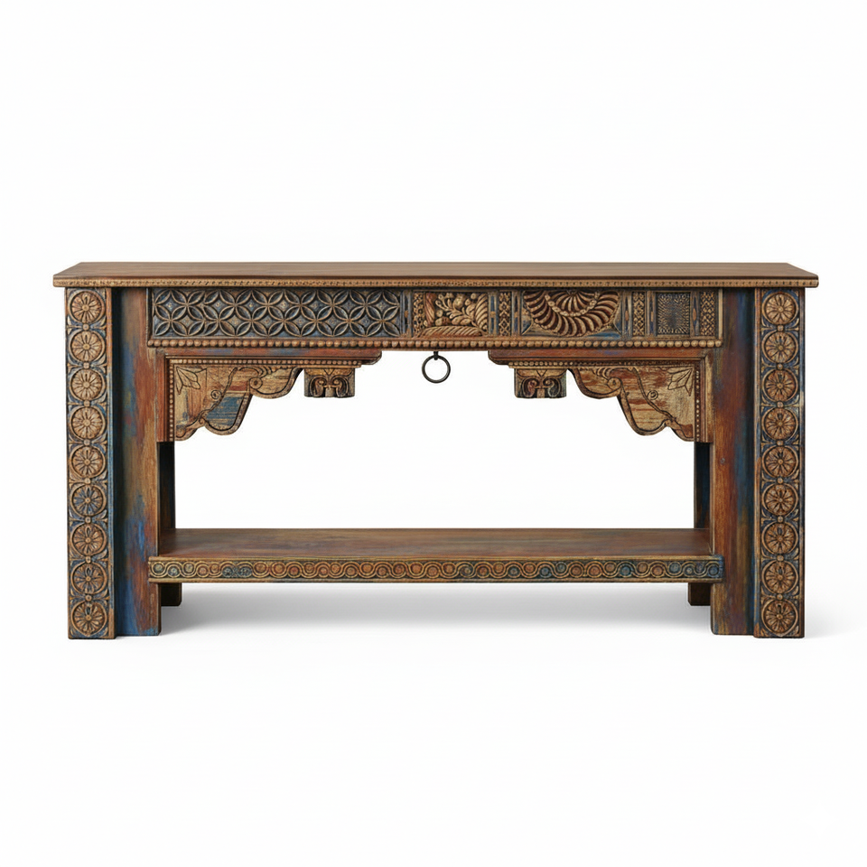 โต๊ะคอนโซลไม้เนื้อแข็งงานฝีมือคุณภาพสูง ดีไซน์ชนเผ่าหลากสี พร้อมลิ้นชัก สำหรับห้องนั่งเล่น ราคาดี มีจำหน่ายแล้ว