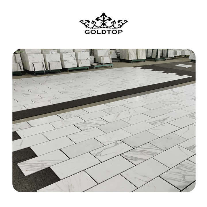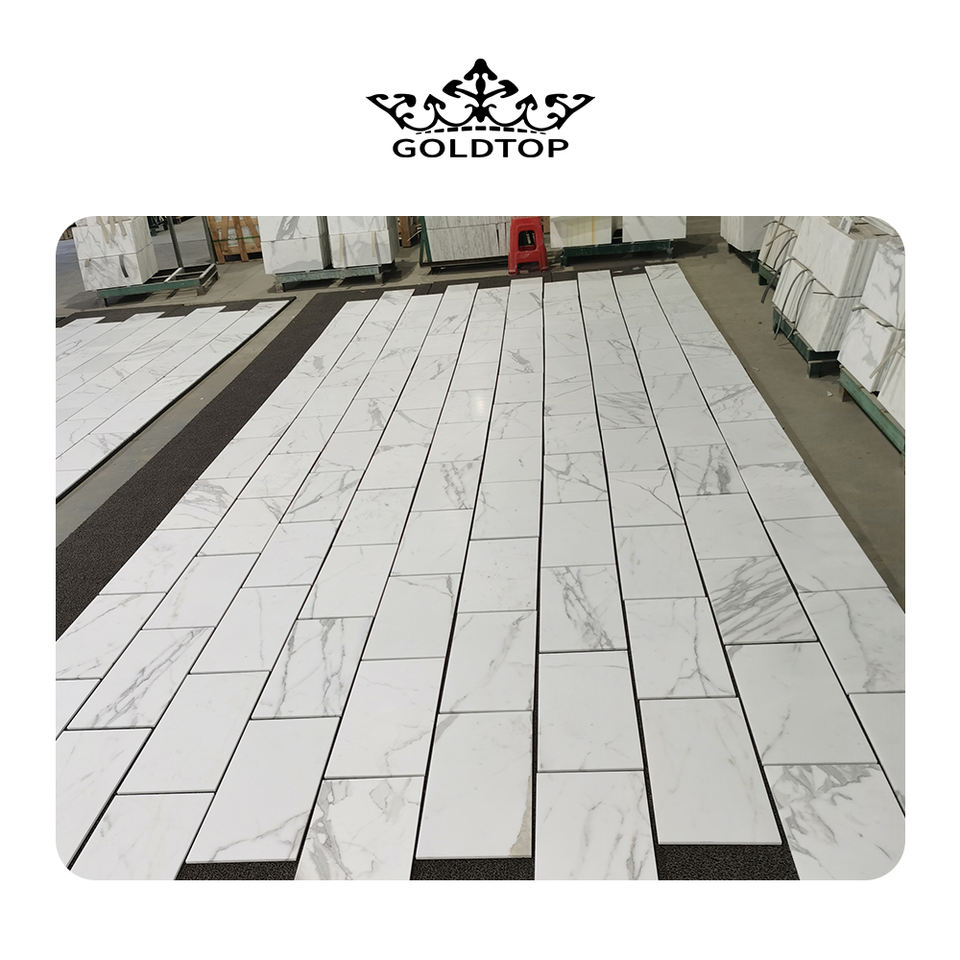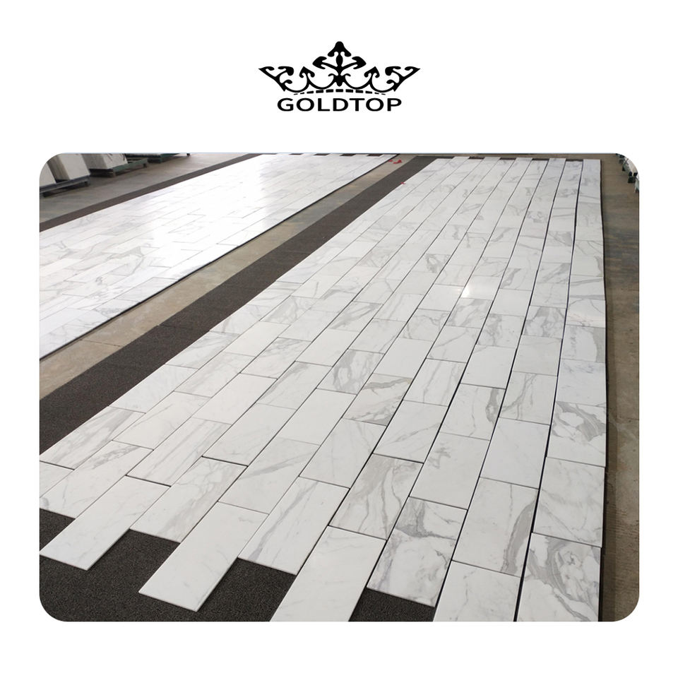 Calacatta หินอ่อนสีขาวสไตล์อิตาลีแผ่นผนังตกแต่งโรงแรมกระเบื้องหินธรรมชาติกระเบื้องปูพื้นหินอ่อนภายใน