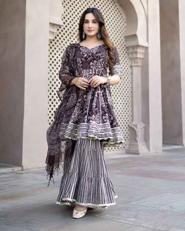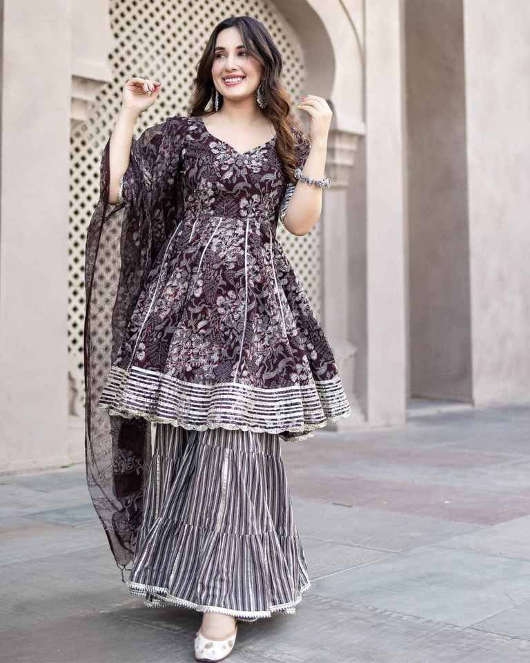 High Quality Luxury Modern Design Sharara Set with Short Anarkali Top for Wedding and Party Wear From Indian Manufacturer