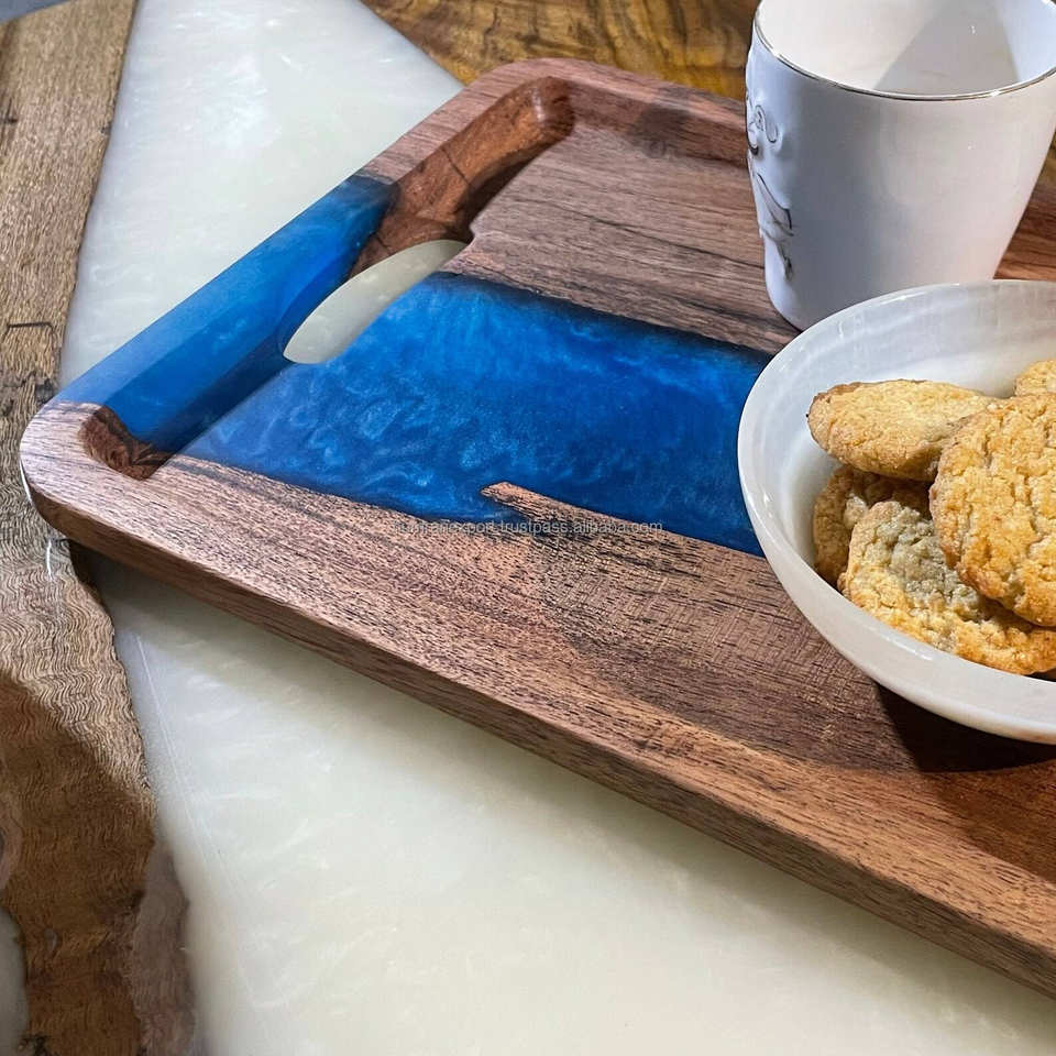 ถาดเสิร์ฟไม้อีพ็อกซี่เรซินสุดหรูสำหรับตกแต่งบ้านร้านอาหารโรงแรมกำหนดขนาดเองได้ถาดอาหารสำหรับตกแต่งห้องครัวและบ้าน