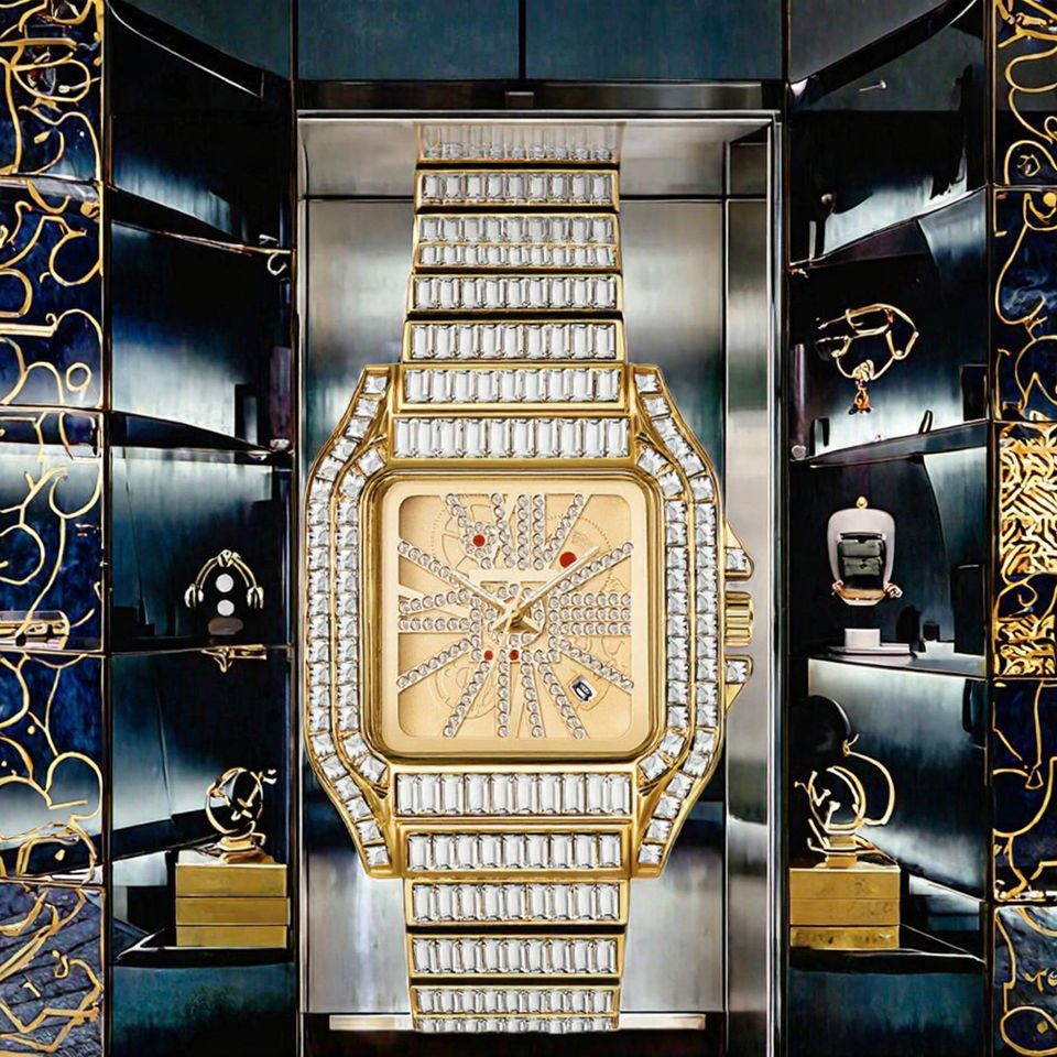 นาฬิกาข้อมือผู้ชายทรงสี่เหลี่ยมหรูหราคุณภาพสูง ประดับเพชรทองคำ ดีไซน์วิบวับ สไตล์ฮิปฮอป ระบบ Citizen รุ่นล่าสุด