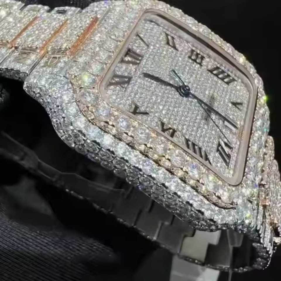 นาฬิกาสแตนเลสสตีลหรูหราคุณภาพสูงสำหรับผู้ชายนาฬิกากลไกจักรกล VVS Moissanite ประดับเพชร