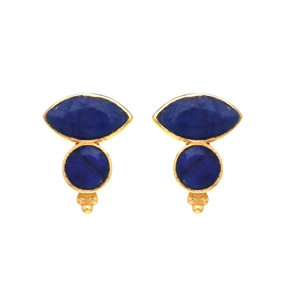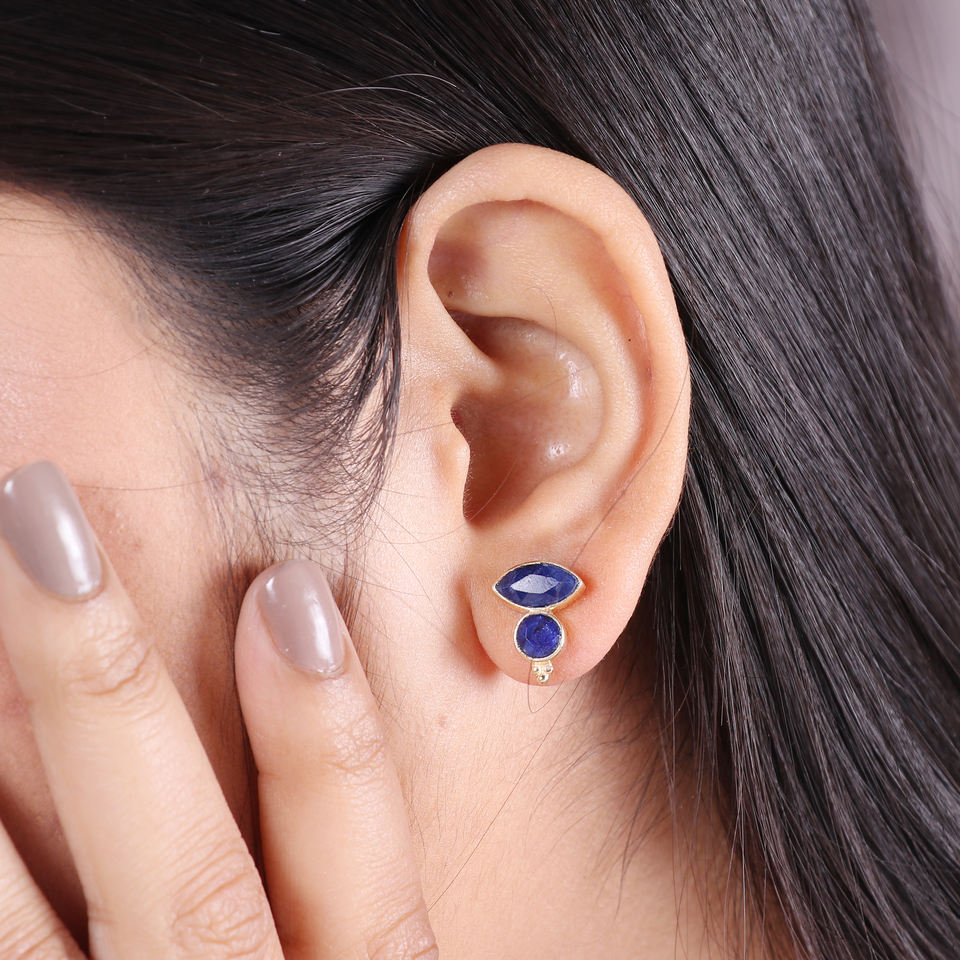ต่างหูพลอยไพลินสีน้ำเงินทรงหยดน้ำ ดีไซน์หรูหรา คุณภาพสูง ผลิตจากเมืองชัยปุระ เหมาะสำหรับทั้งชายและหญิง ราคาขายส่ง