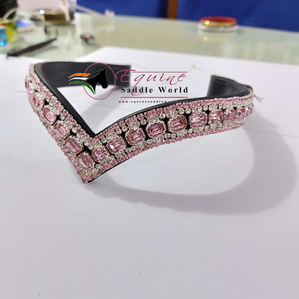 แถบคิ้วคริสตัลสีชมพูรูปตัววีหรูหราสำหรับกีฬากลางแจ้งสินค้าขี่ม้า