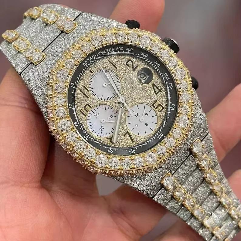 นาฬิกาข้อมือผู้ชายคุณภาพสูงหรูหราประดับเพชรโมอิสซาไนต์ VVS ดีไซน์กลไก สไตล์ฮิปฮอปสุดหรู ชุบ CVD แฟชั่นใหม่