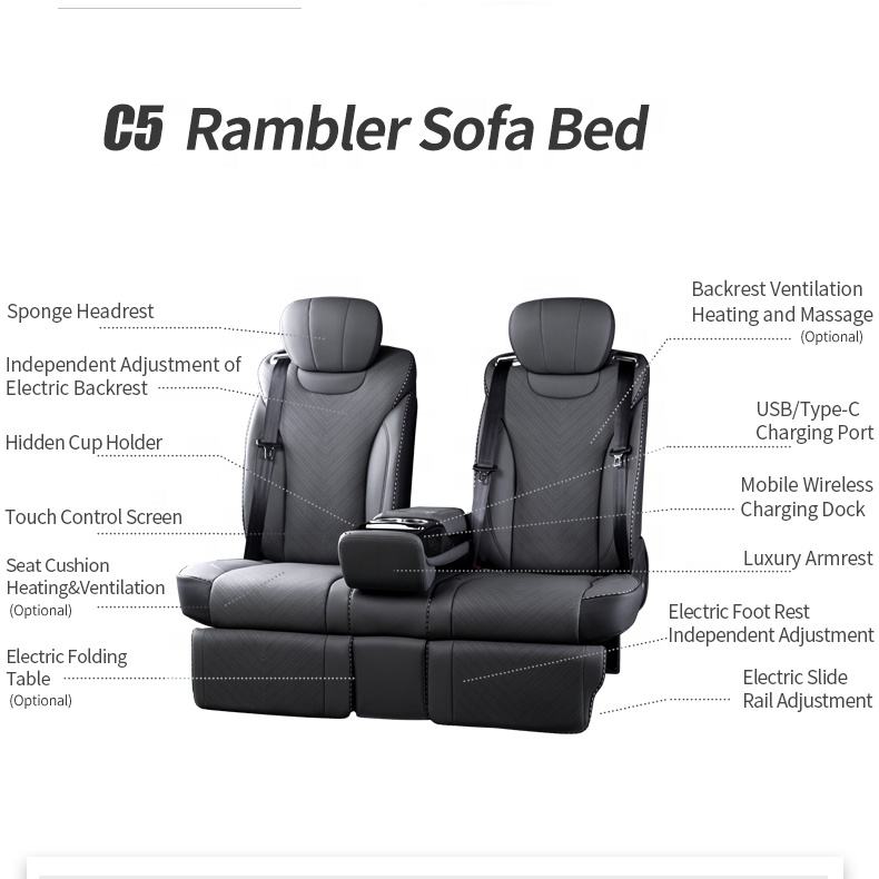 โซฟาปรับนอนคุณภาพสูงระดับหรูหราแบบกำหนดเองสำหรับรถยนต์ Volkswagen Multivan Caravelle
