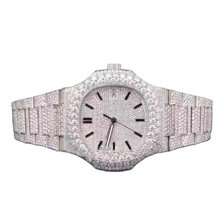 นาฬิกาสุดหรูคุณภาพสูงนาฬิกากลไกสำหรับผู้ชาย VVS Moissanite ประดับเพชรสไตล์ฮิปฮอป
